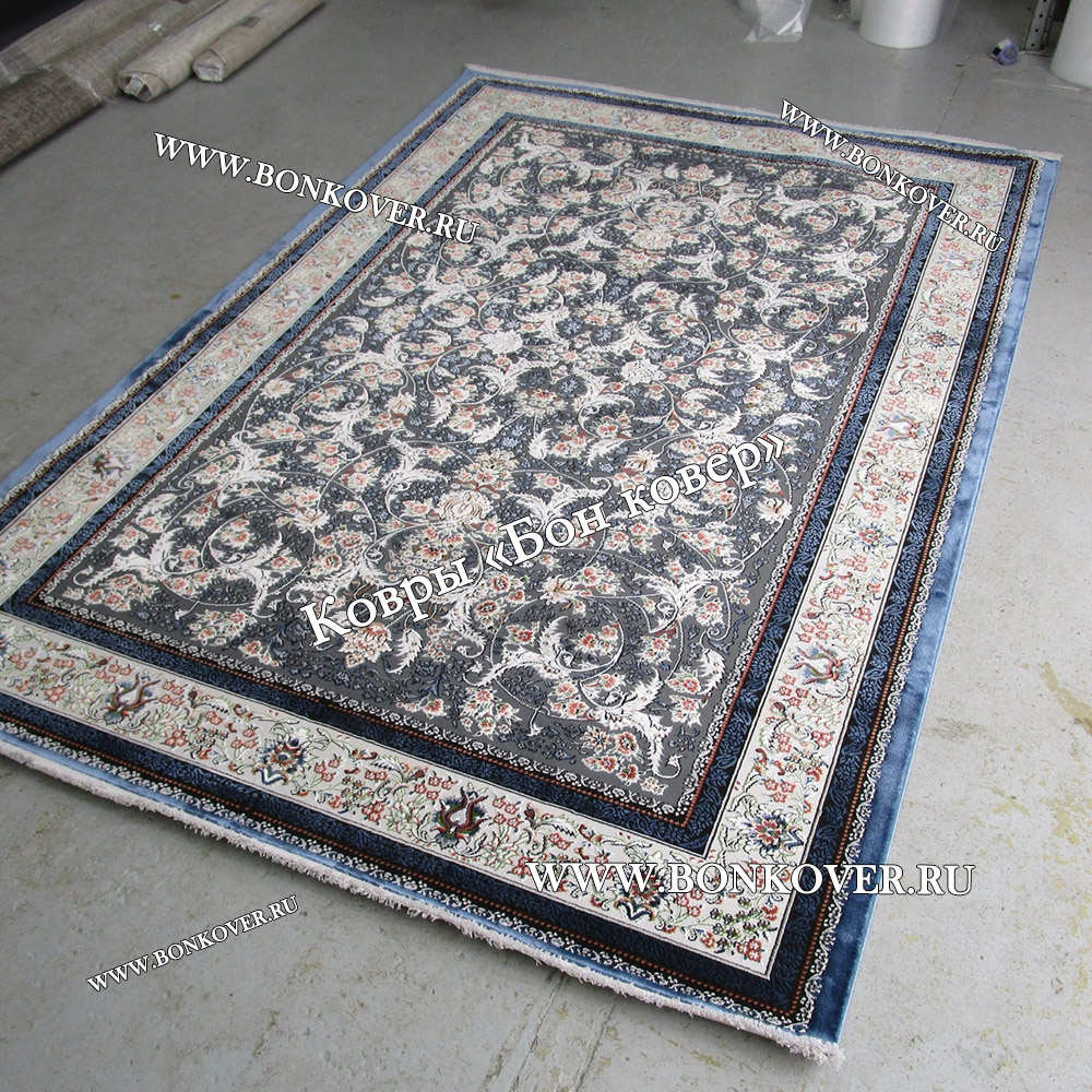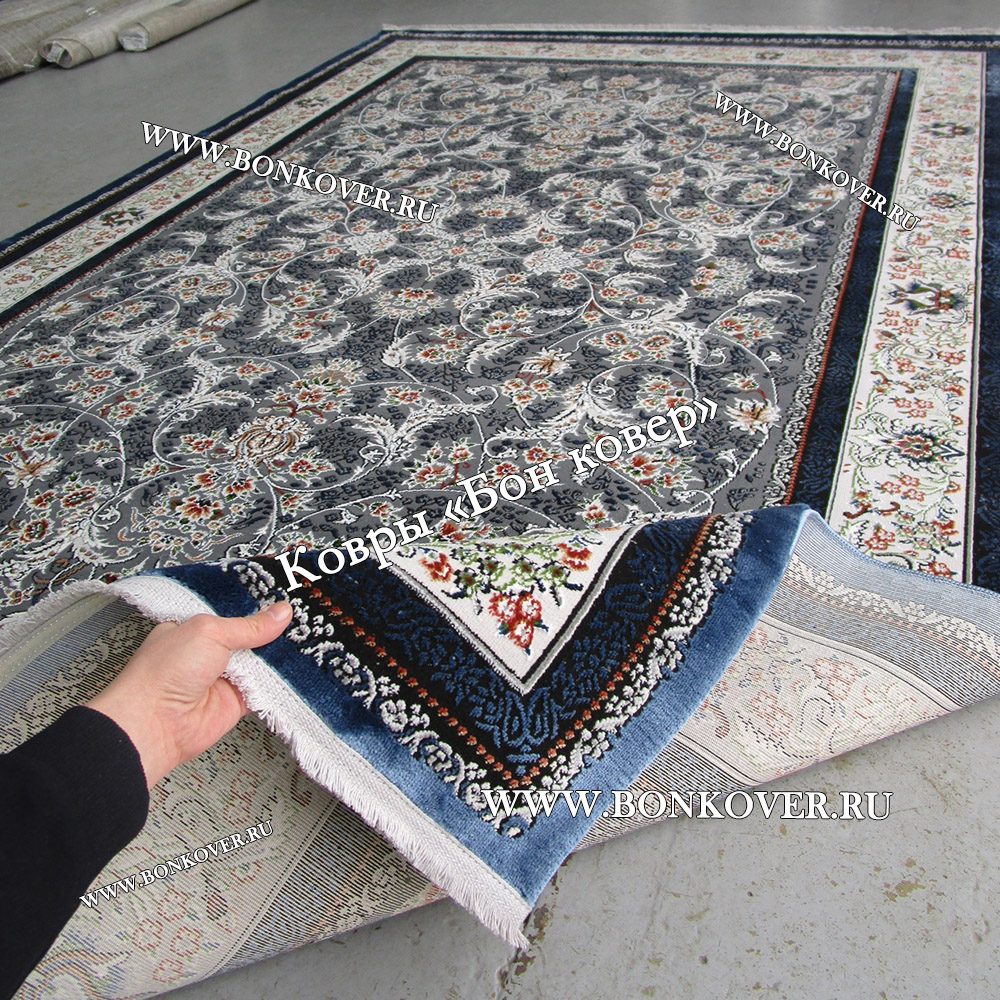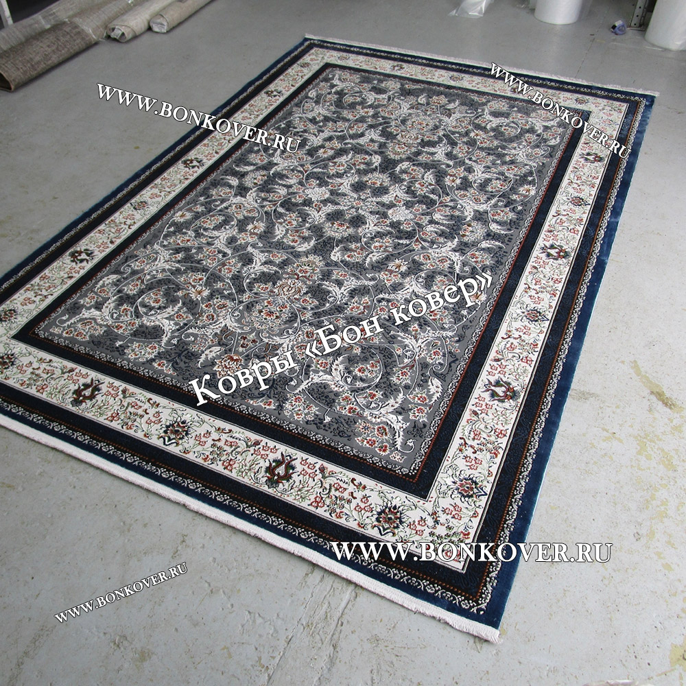 Долго искали смотрели на разных сайтах , в итоге ваш ковер приглянулся больше всего . Доставили в рулоне на следующий день , оплатили при получении . Идеальный вариант , цвет темно синий с переливом - рисунок очень выйгрышно смотрится !