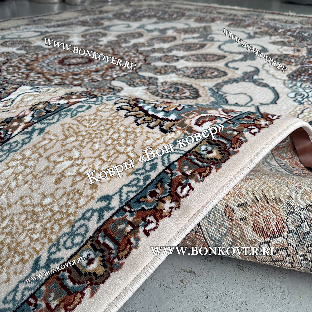 Высокоплотный Премиальный Ковер из Артшелка Дизайн 02 Голубой с Бежевым