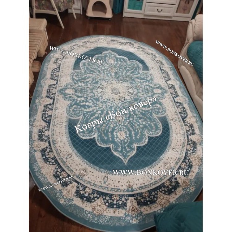 Ковер Турция Для Гостиной Дизайн 72 Голубой Овал
